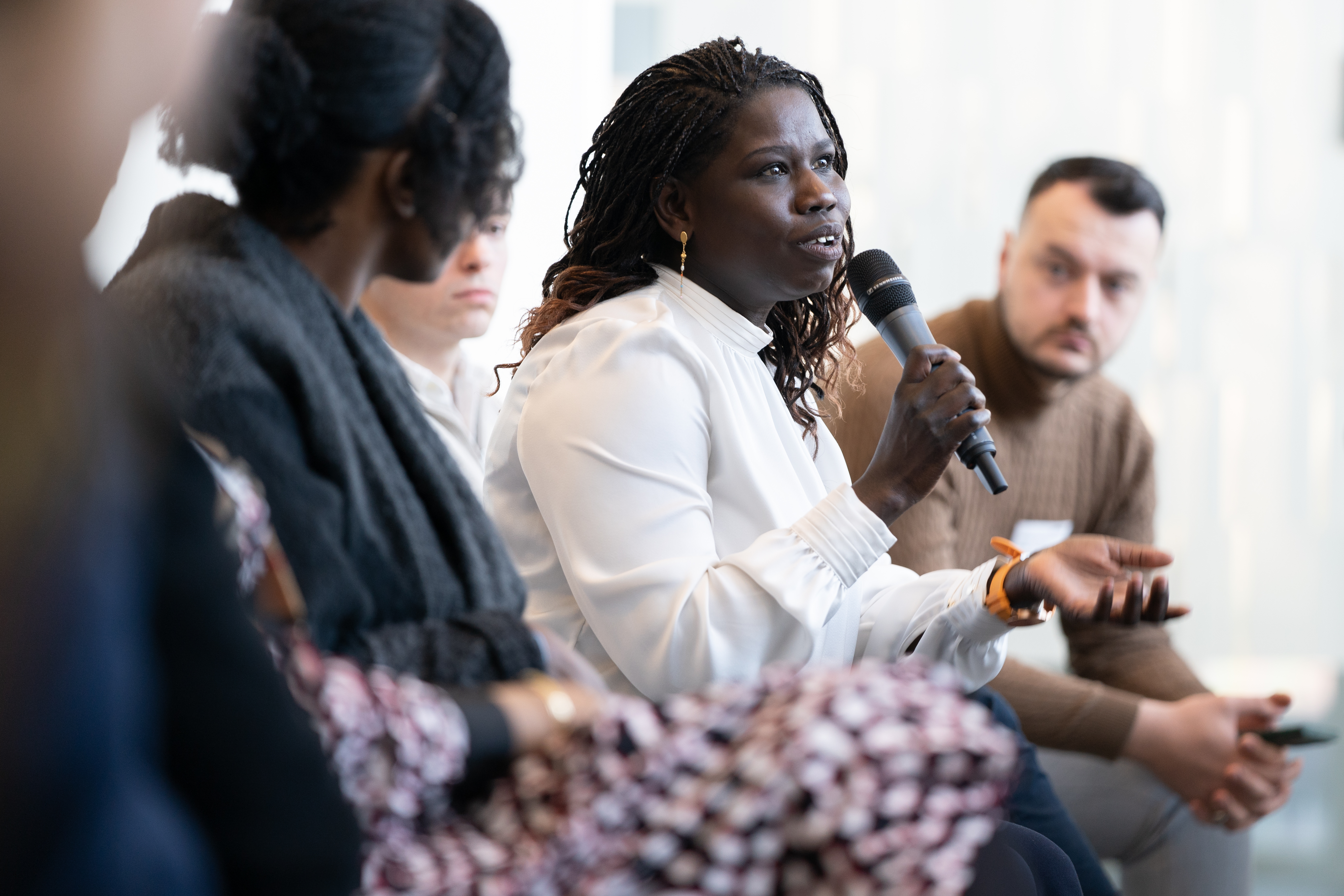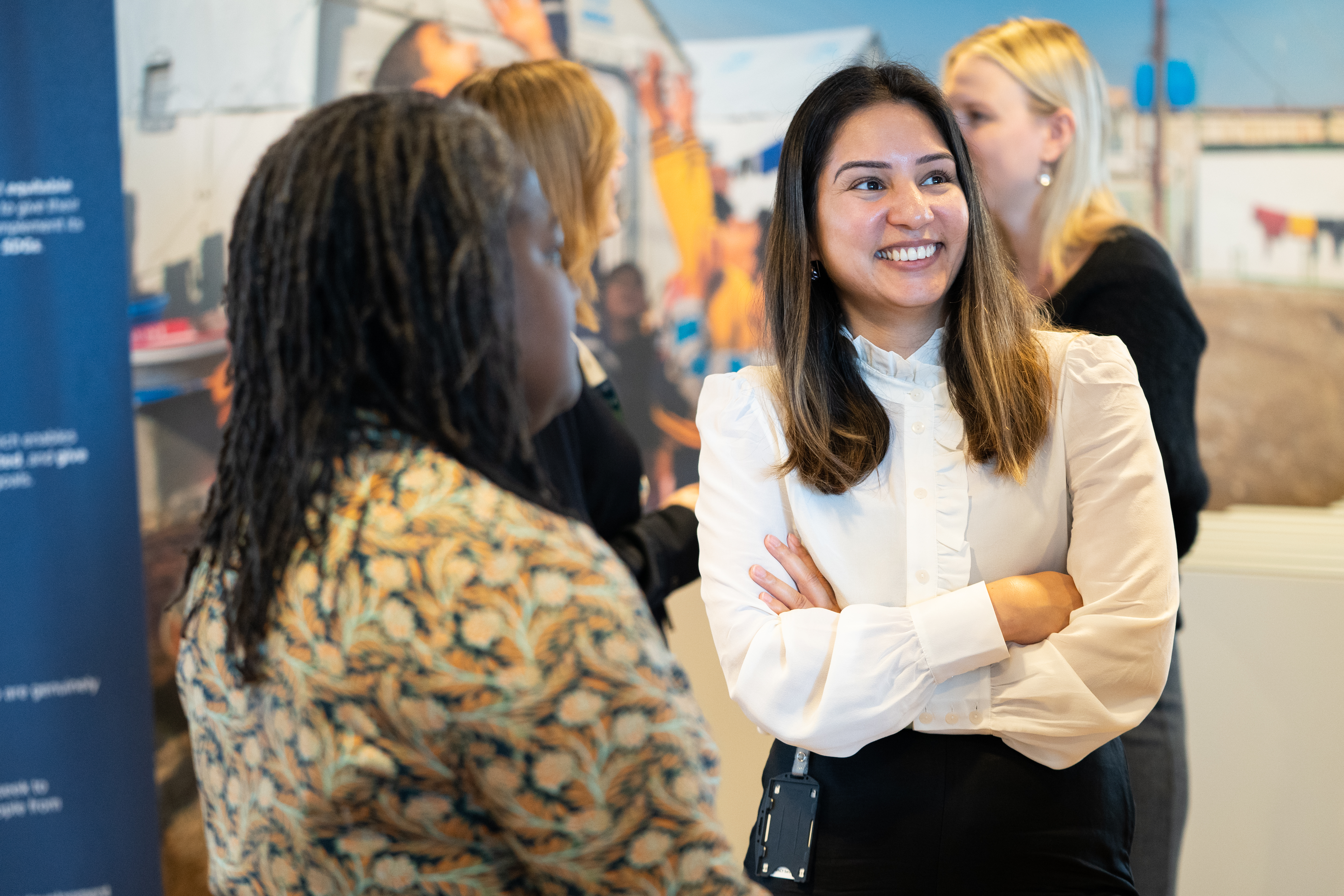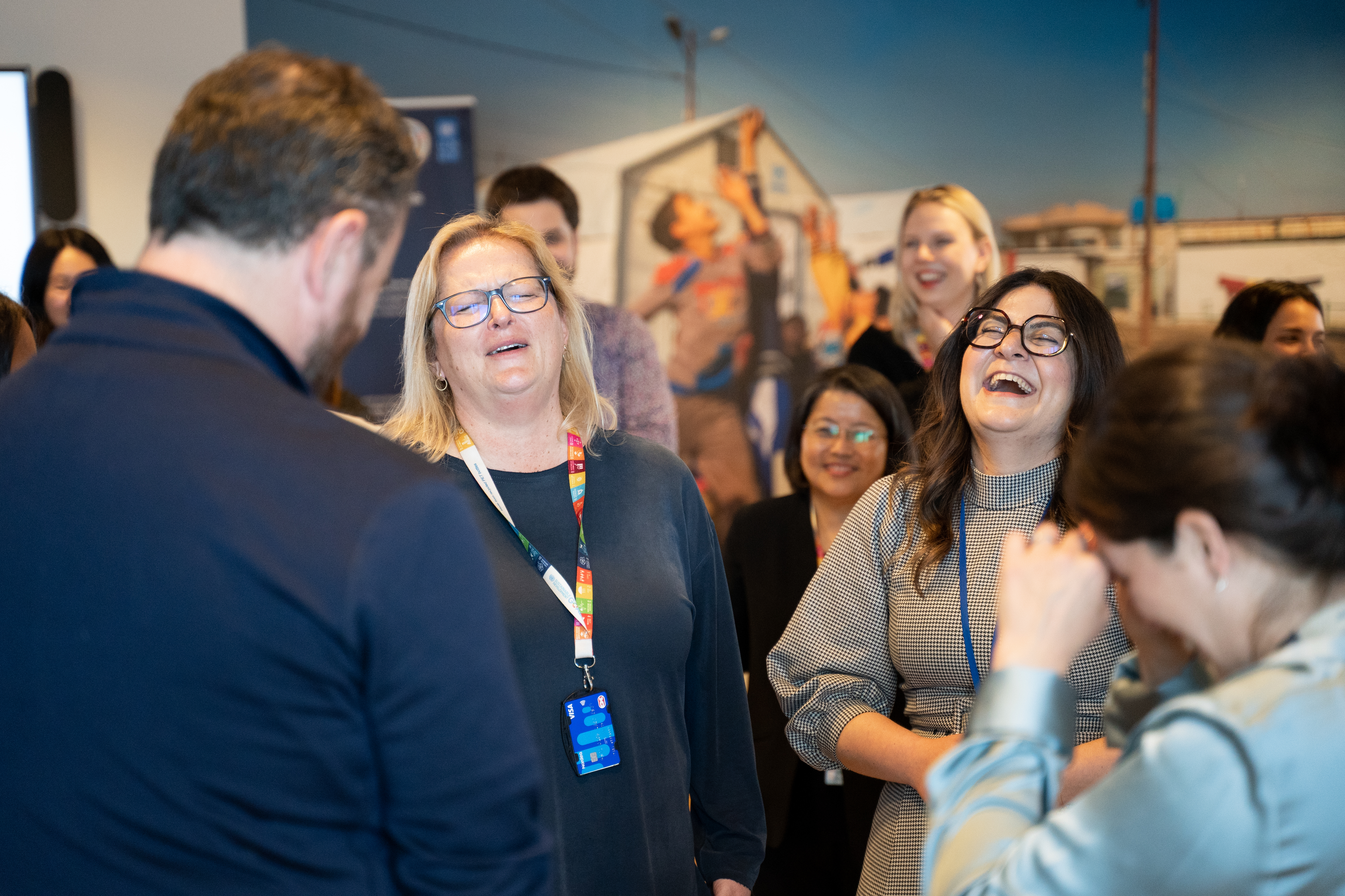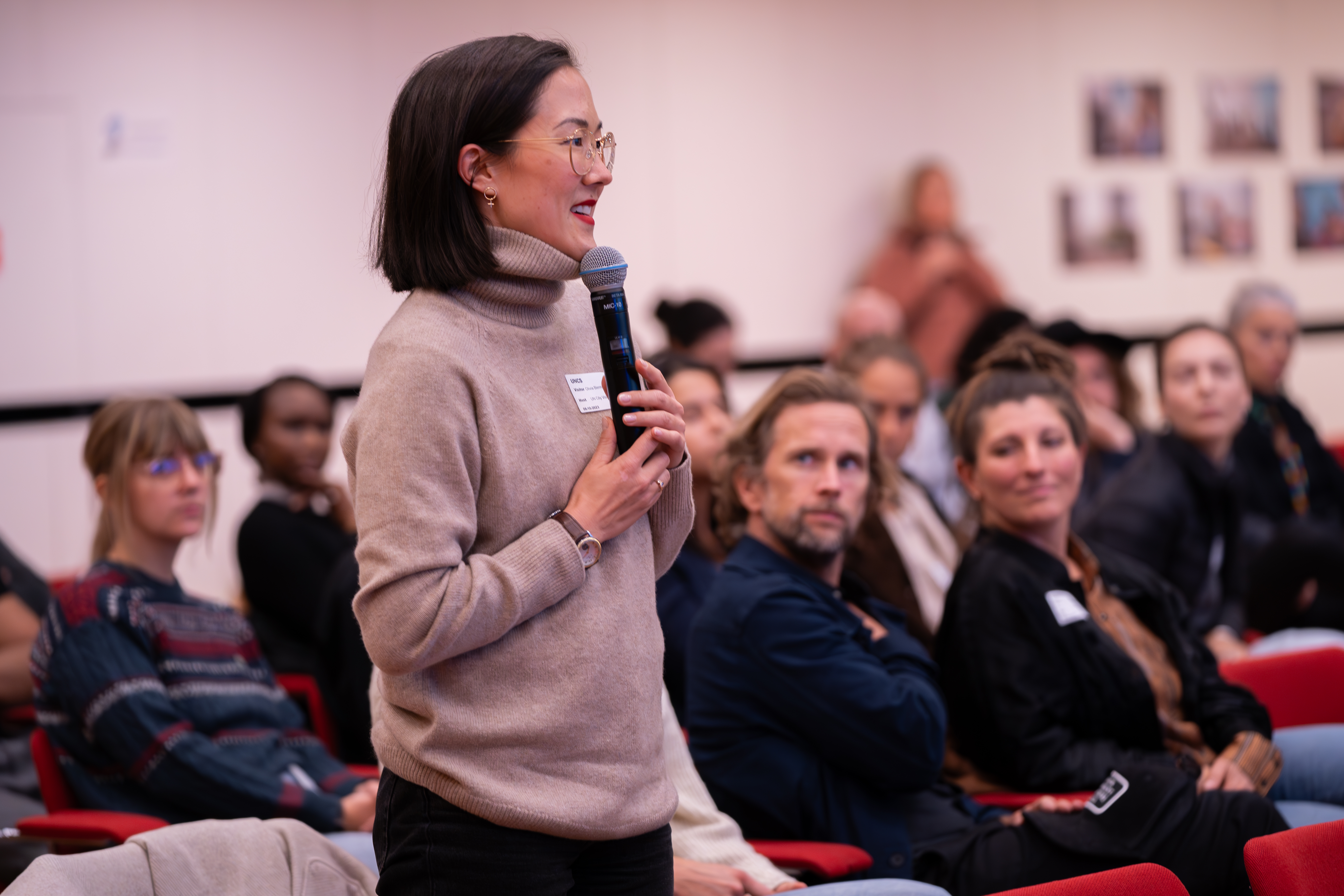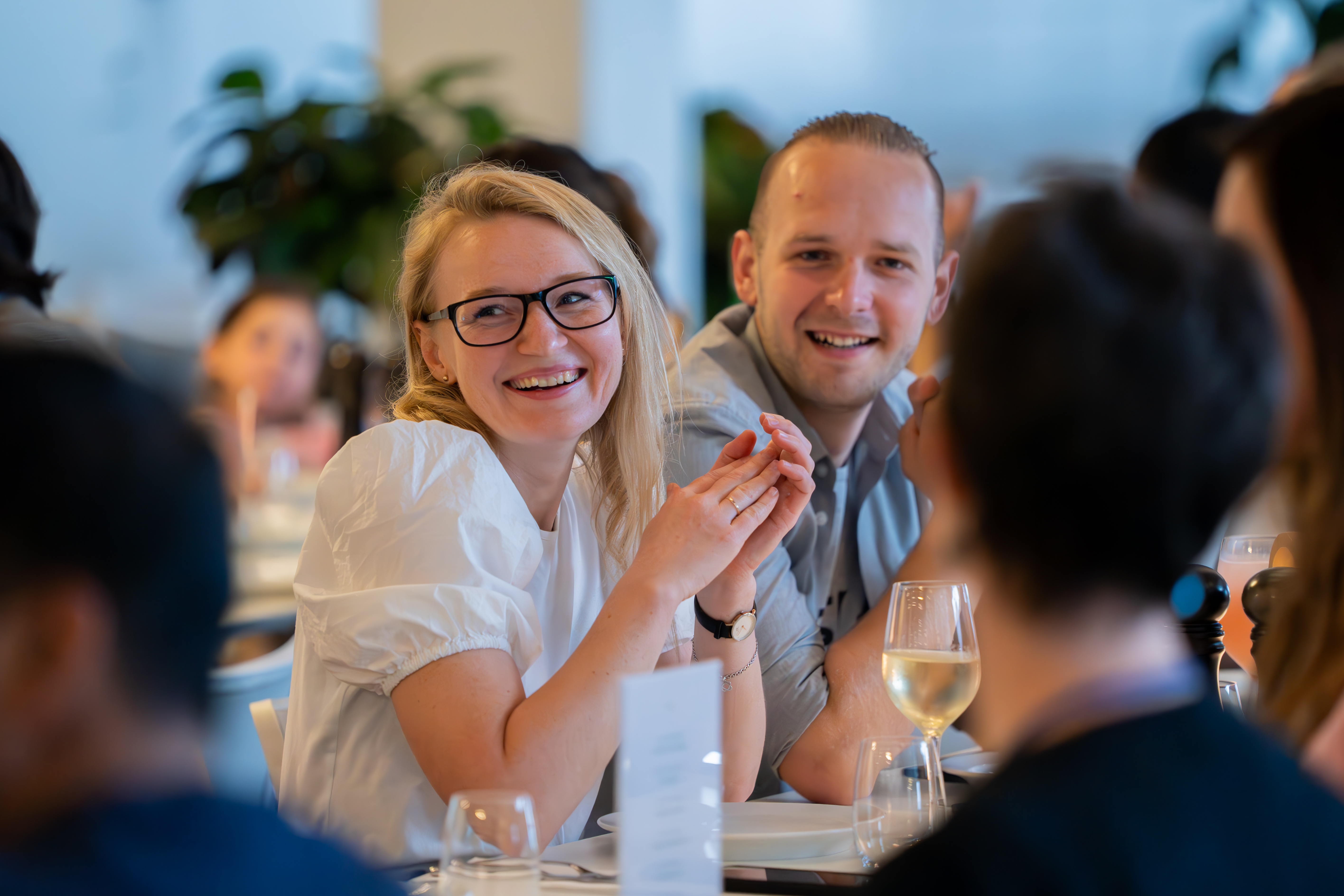 โ A stylised logo formed by 2 abstract figures leaning toward each other, with a central dot as the โheadโ โ symbolising dialogue, collaboration, and shared insights