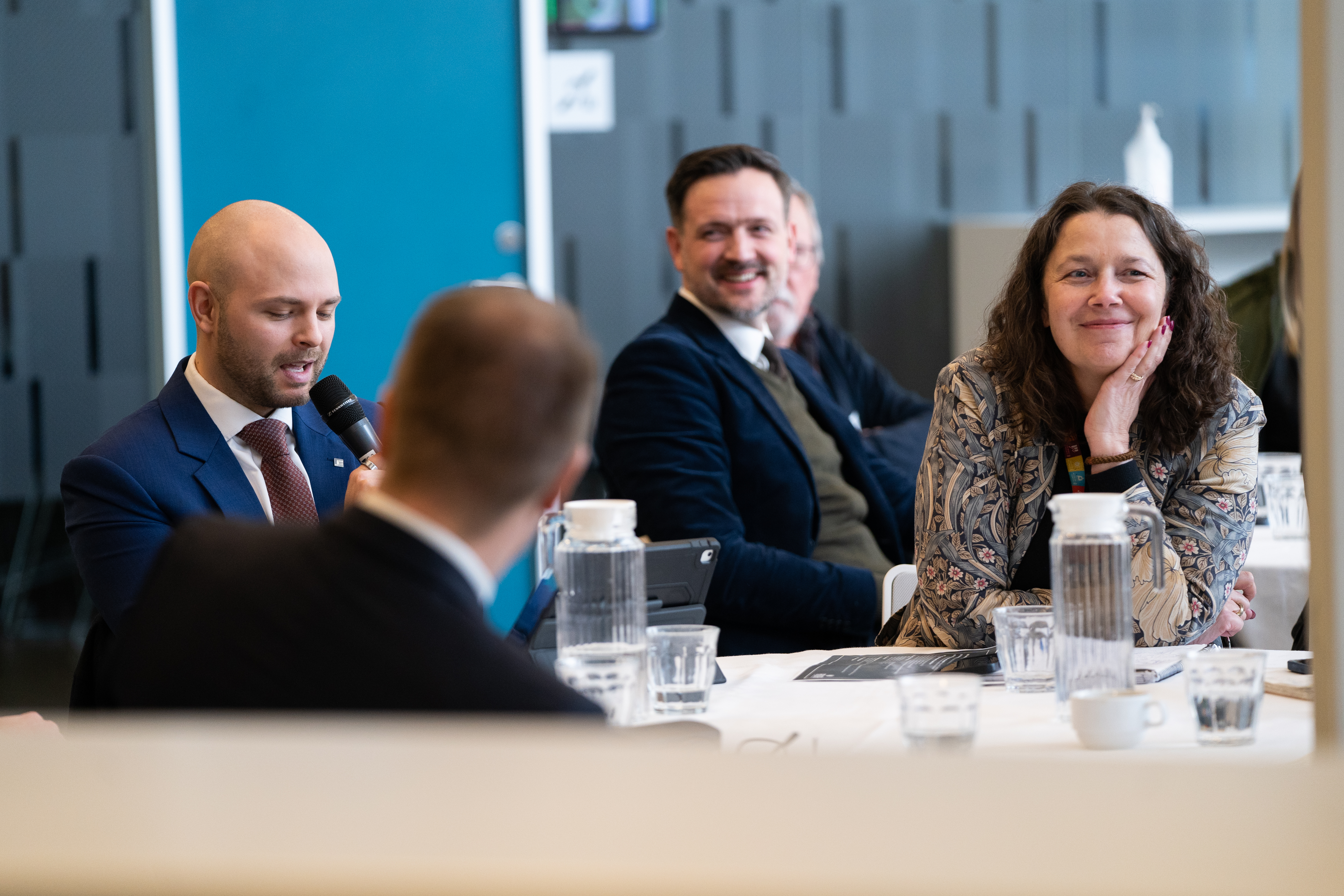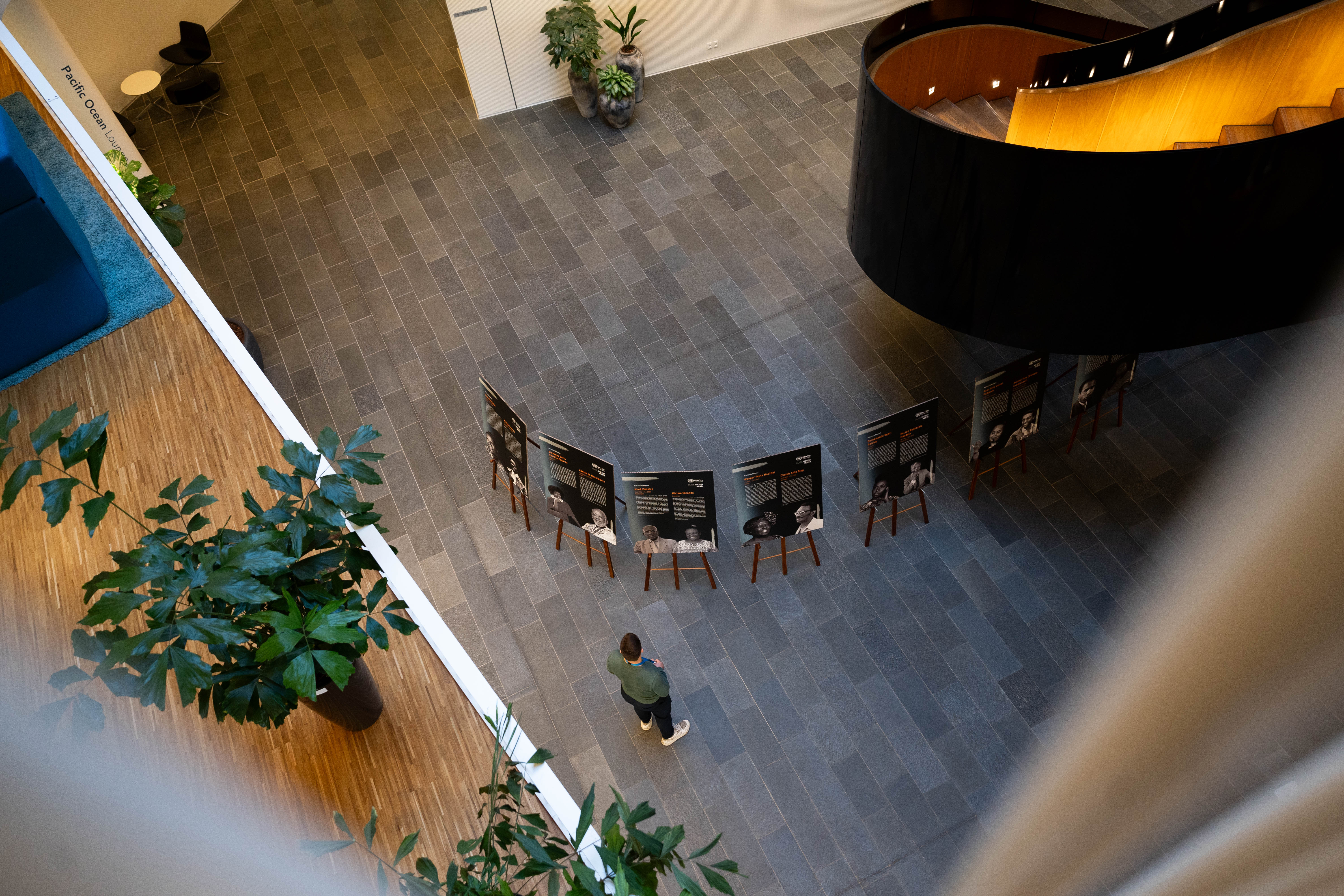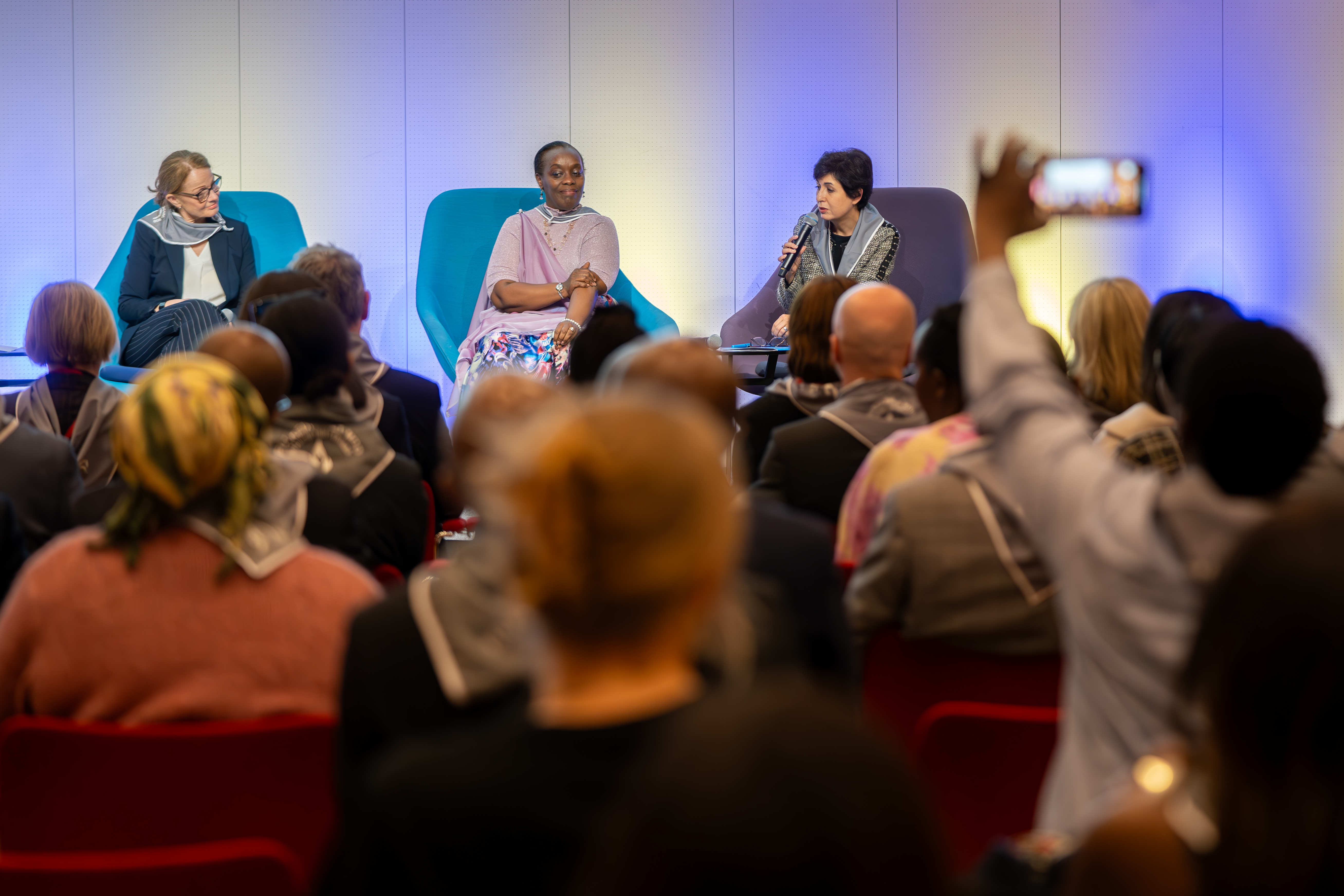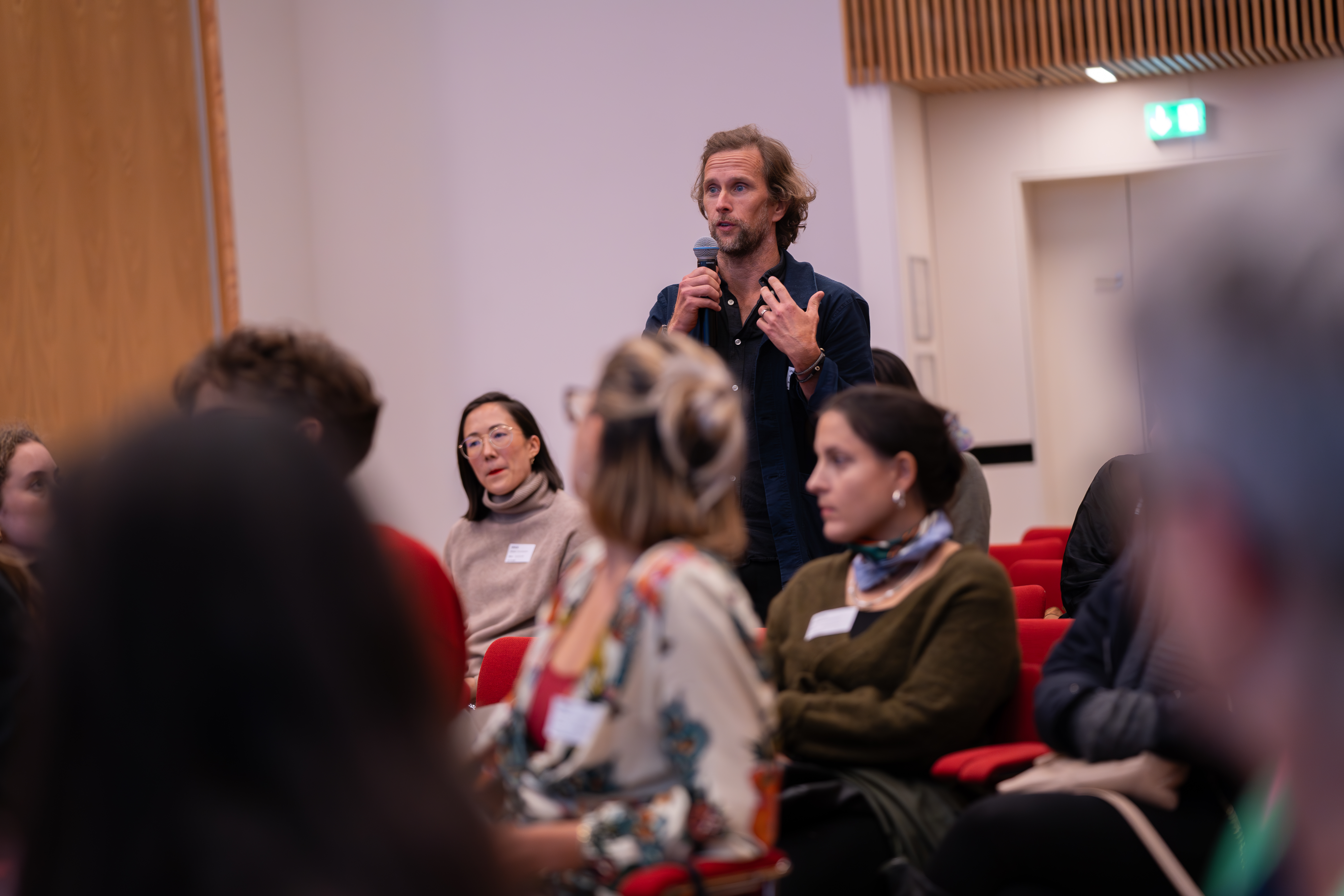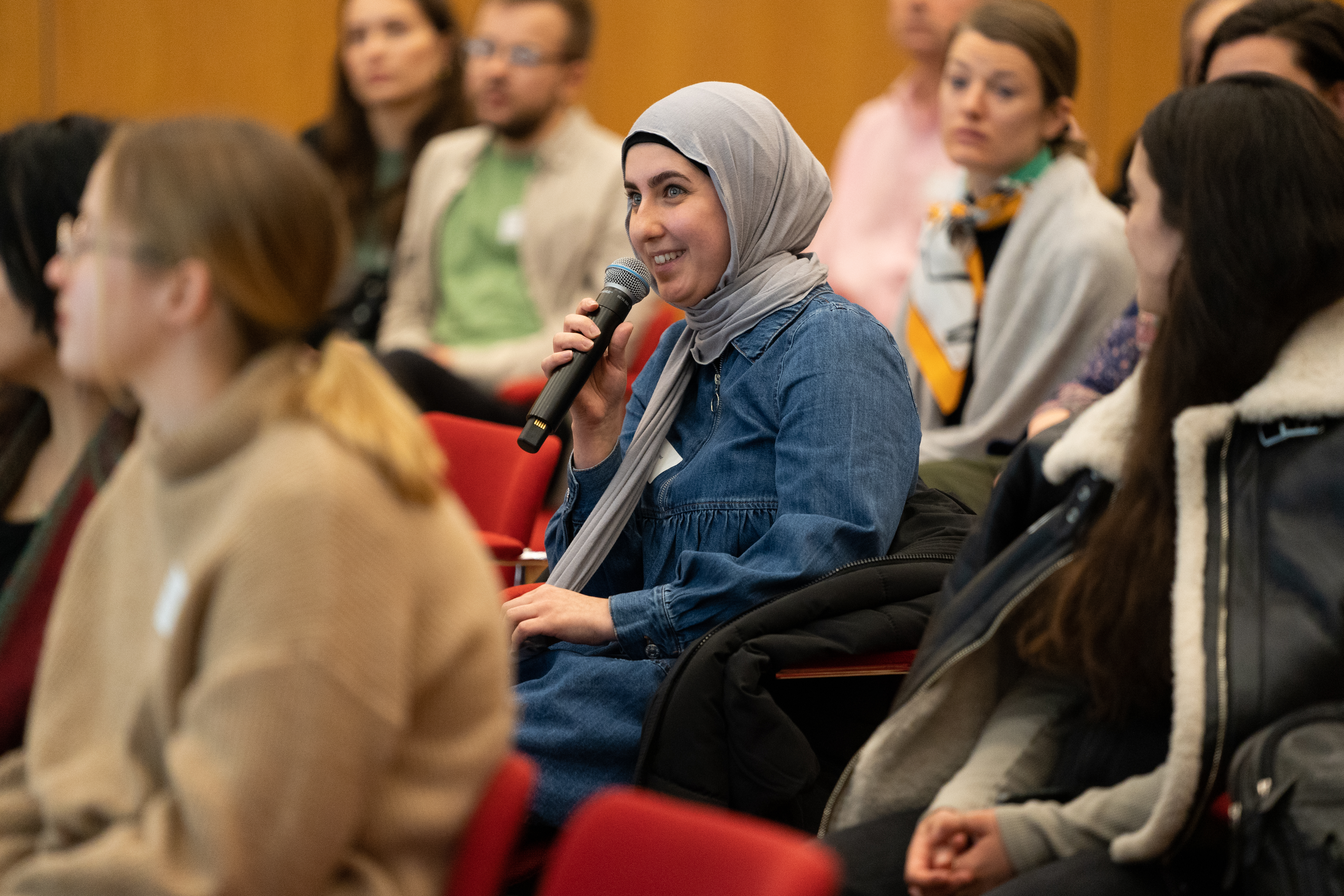 โ A stylised logo formed by 2 abstract figures leaning toward each other, with a central dot as the โheadโ โ symbolising dialogue, collaboration, and shared insights