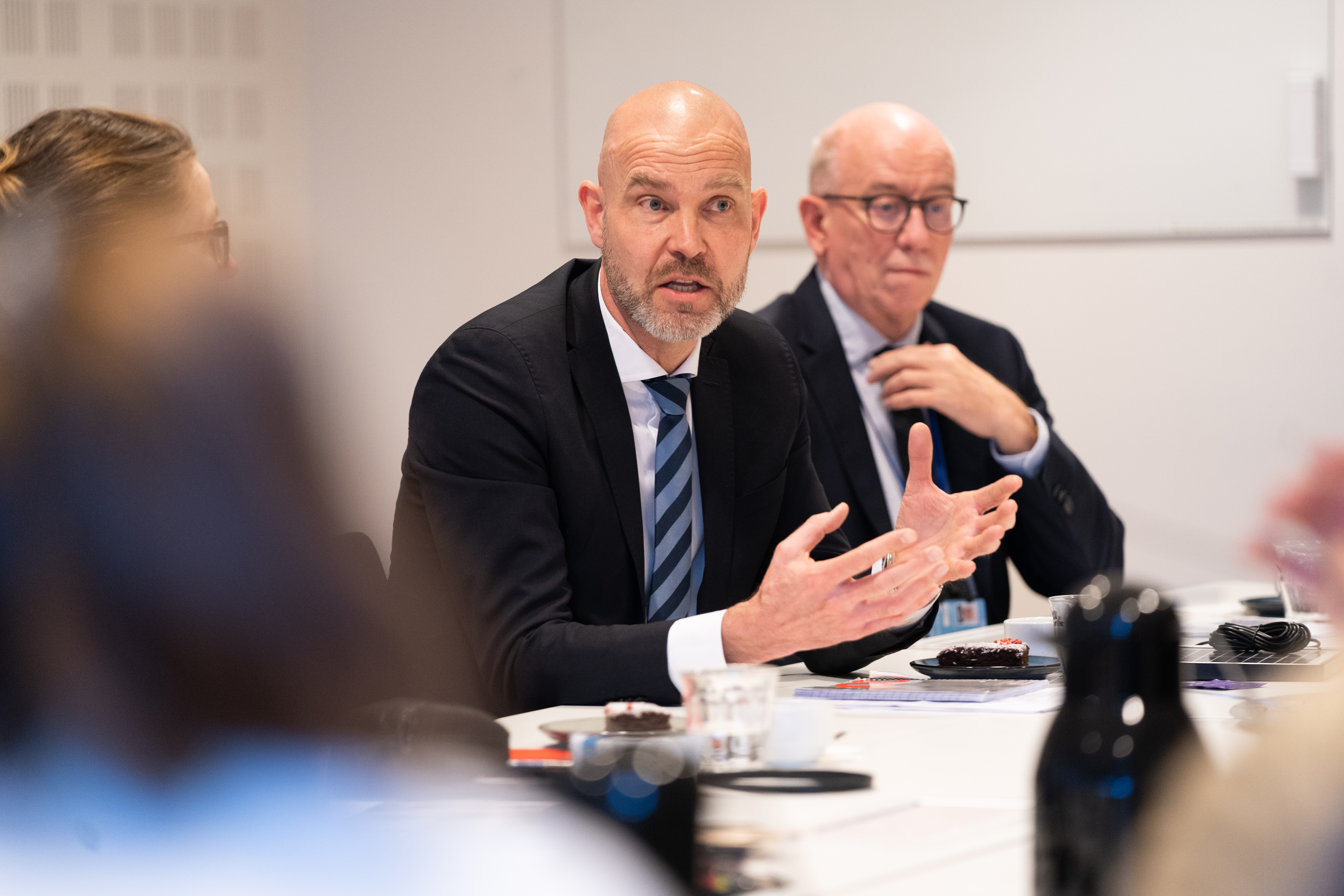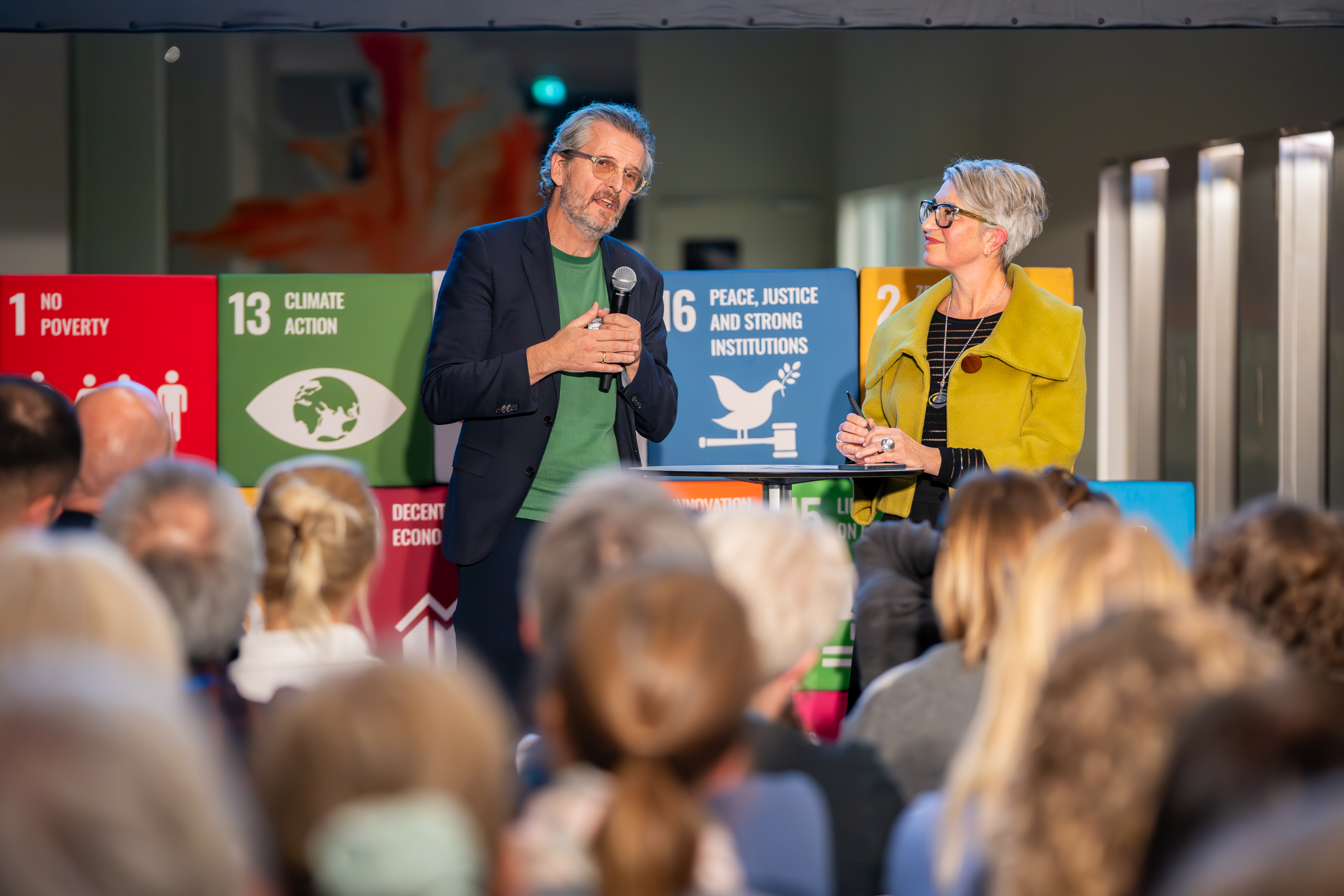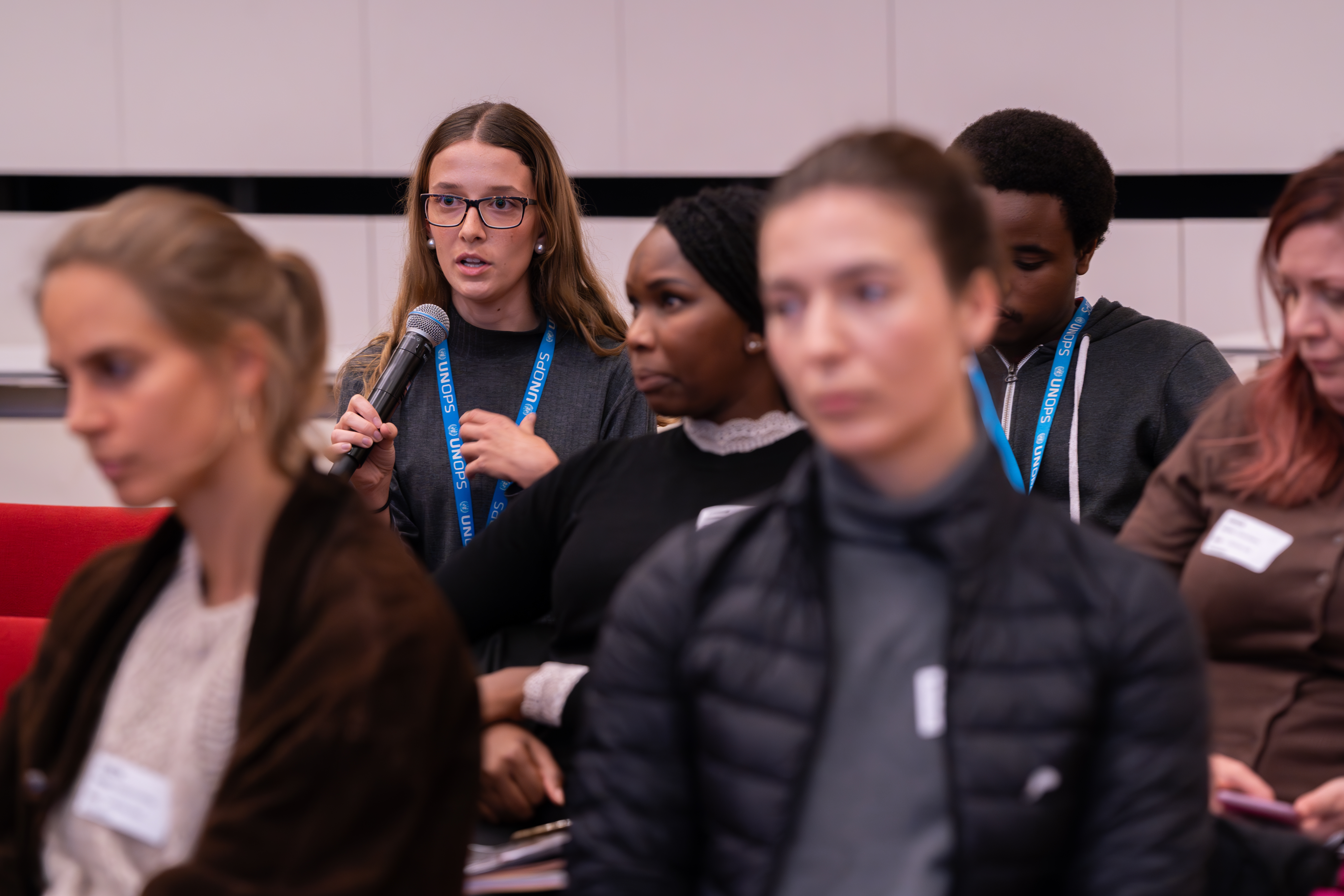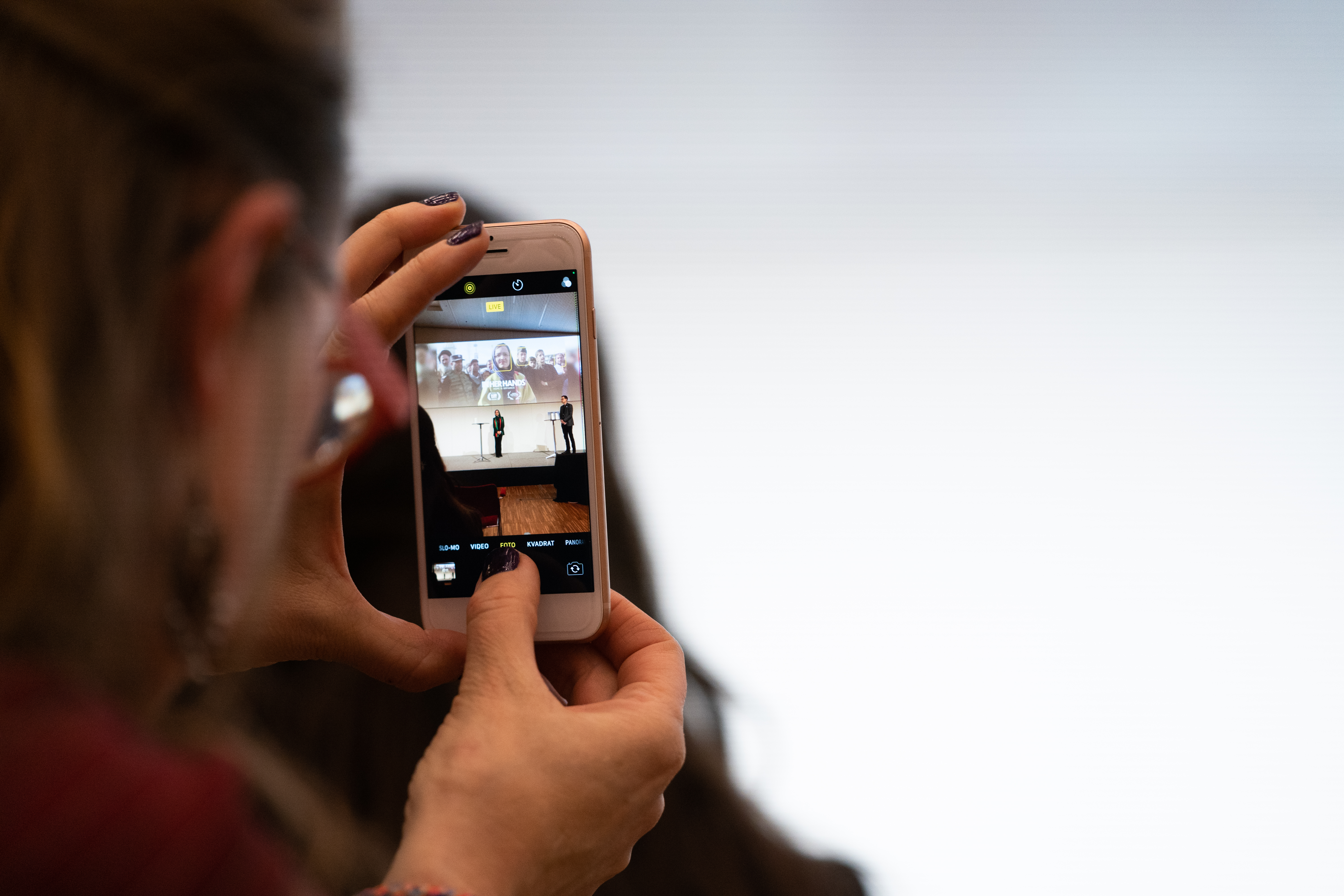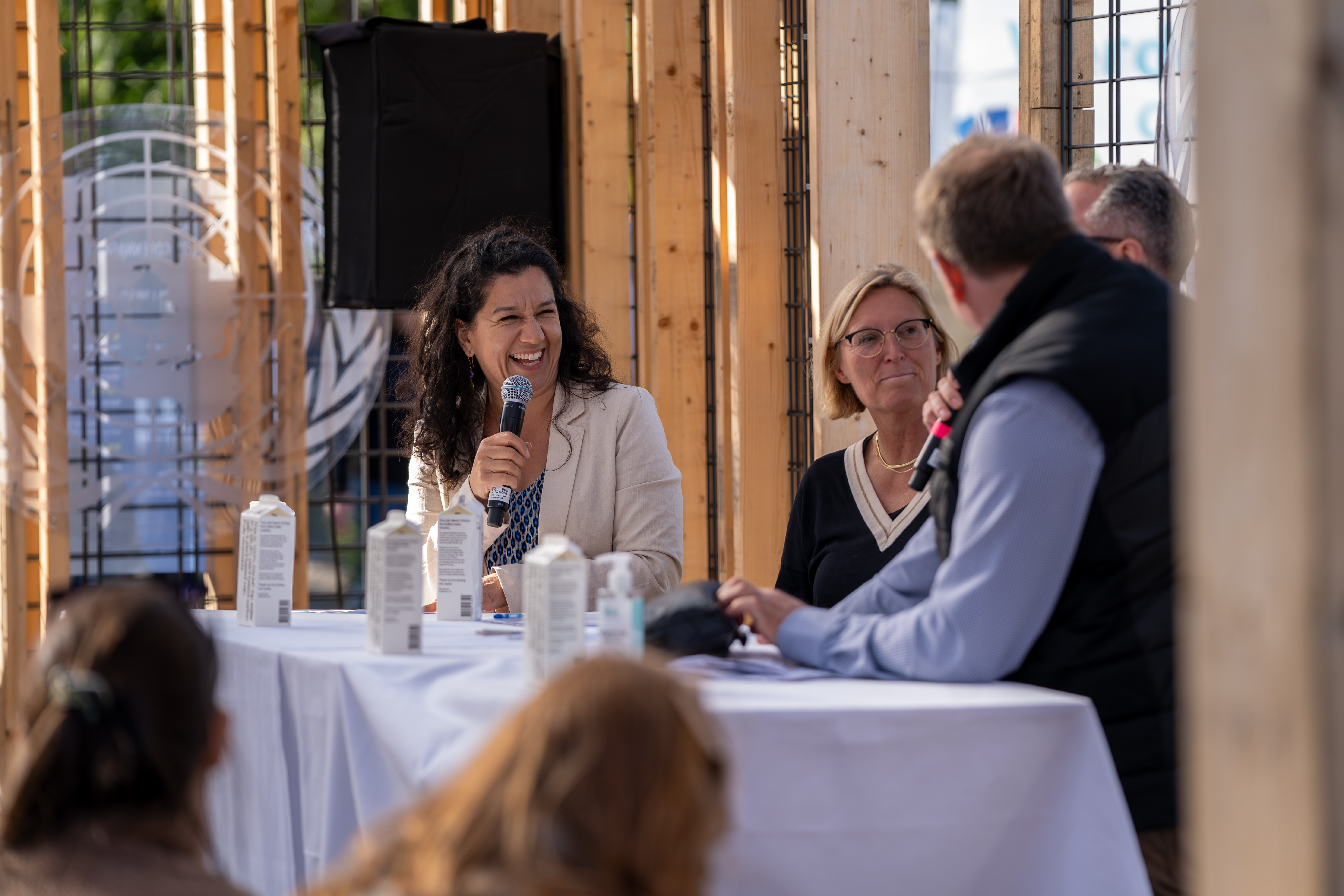 โ A stylised logo formed by 2 abstract figures leaning toward each other, with a central dot as the โheadโ โ symbolising dialogue, collaboration, and shared insights