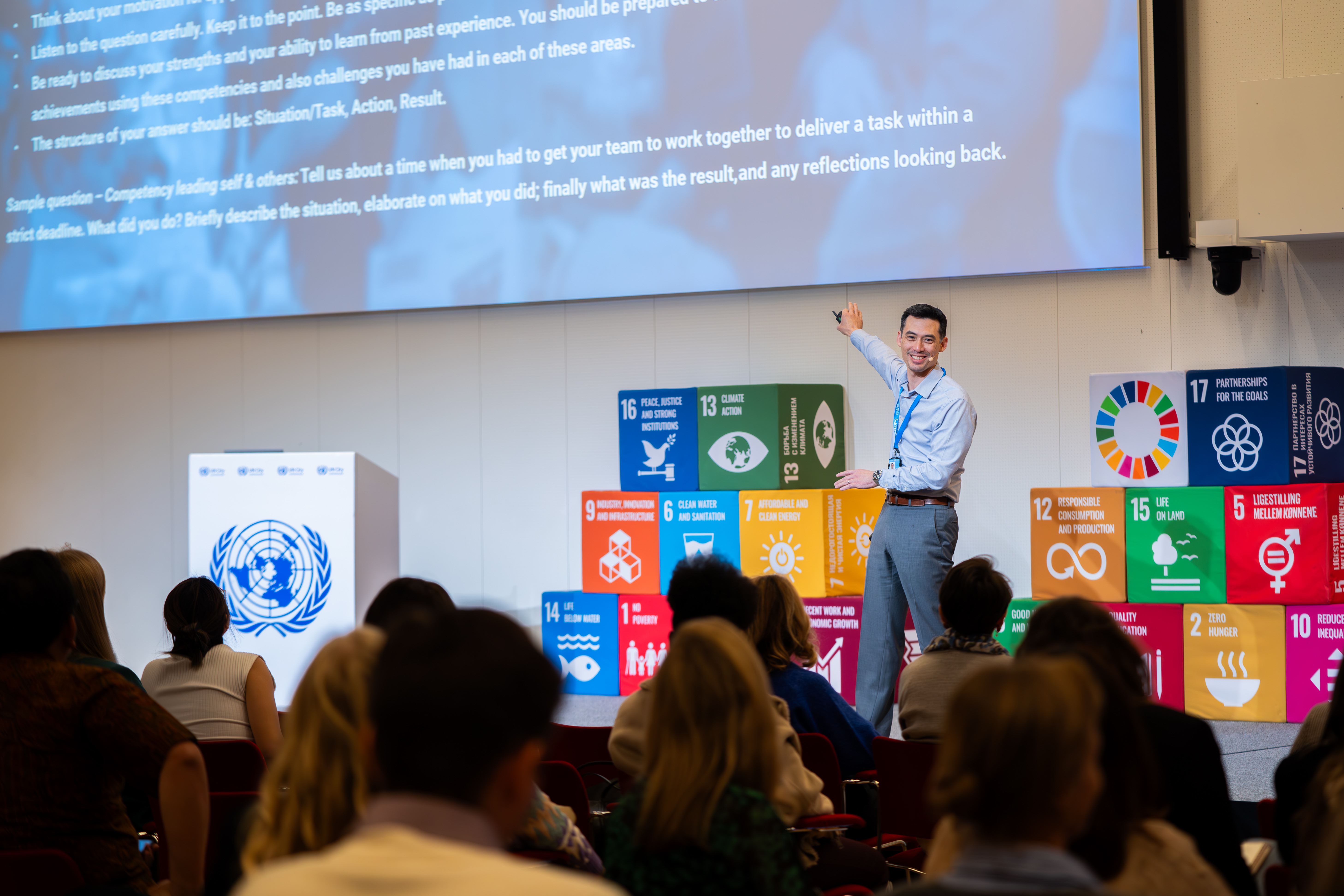 โ A complementary colour system: deep blue (trust, analytical depth, professionalism), vibrant yellow-orange (creativity, optimism, momentum), and white (clarity, confidence, simplicity)